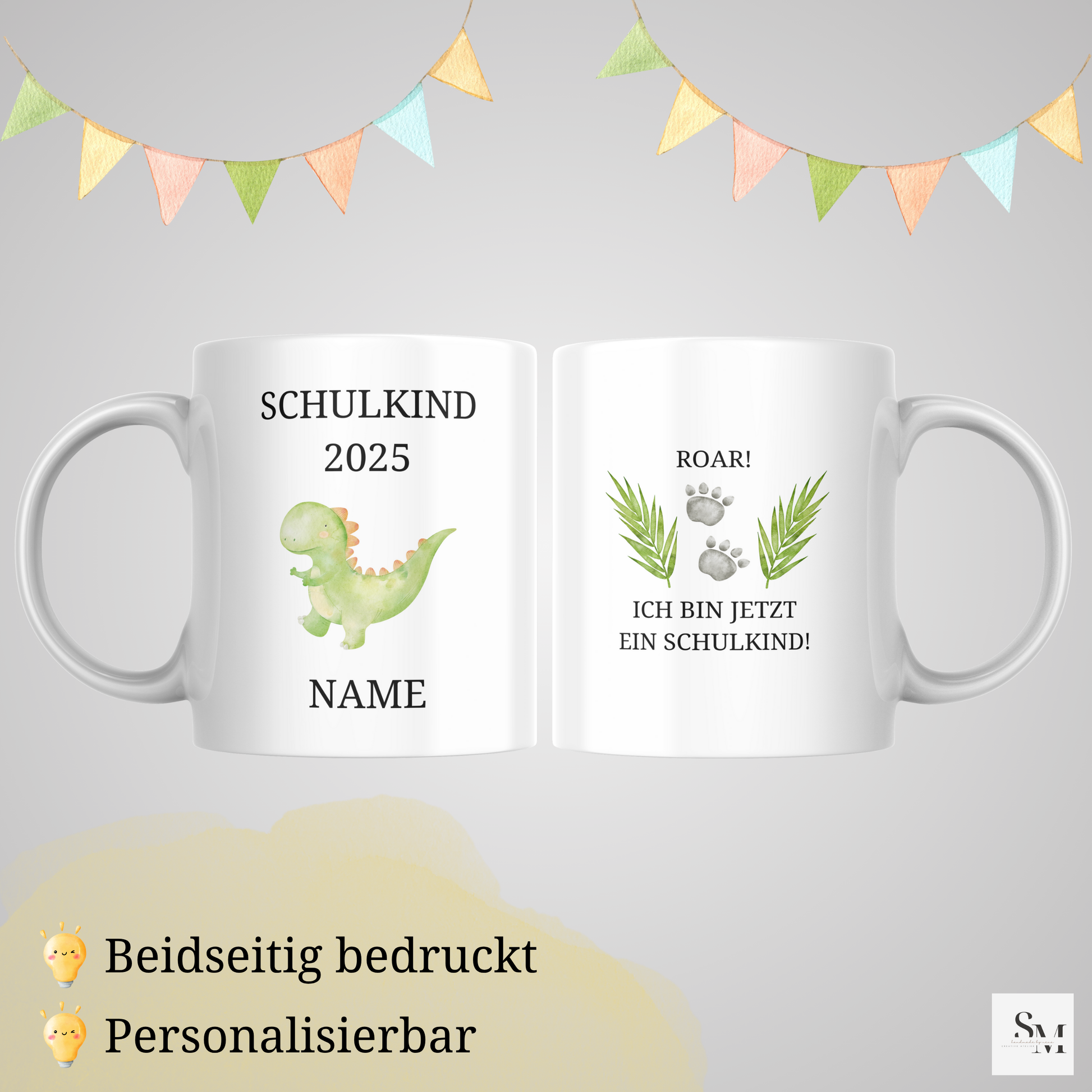 Personalisierte Tasse Einschulung 2025 - Dino | Geschenk Schulkind | Junge | Mädchen | Keramiktasse Schultßte | Einschulungsgeschenk