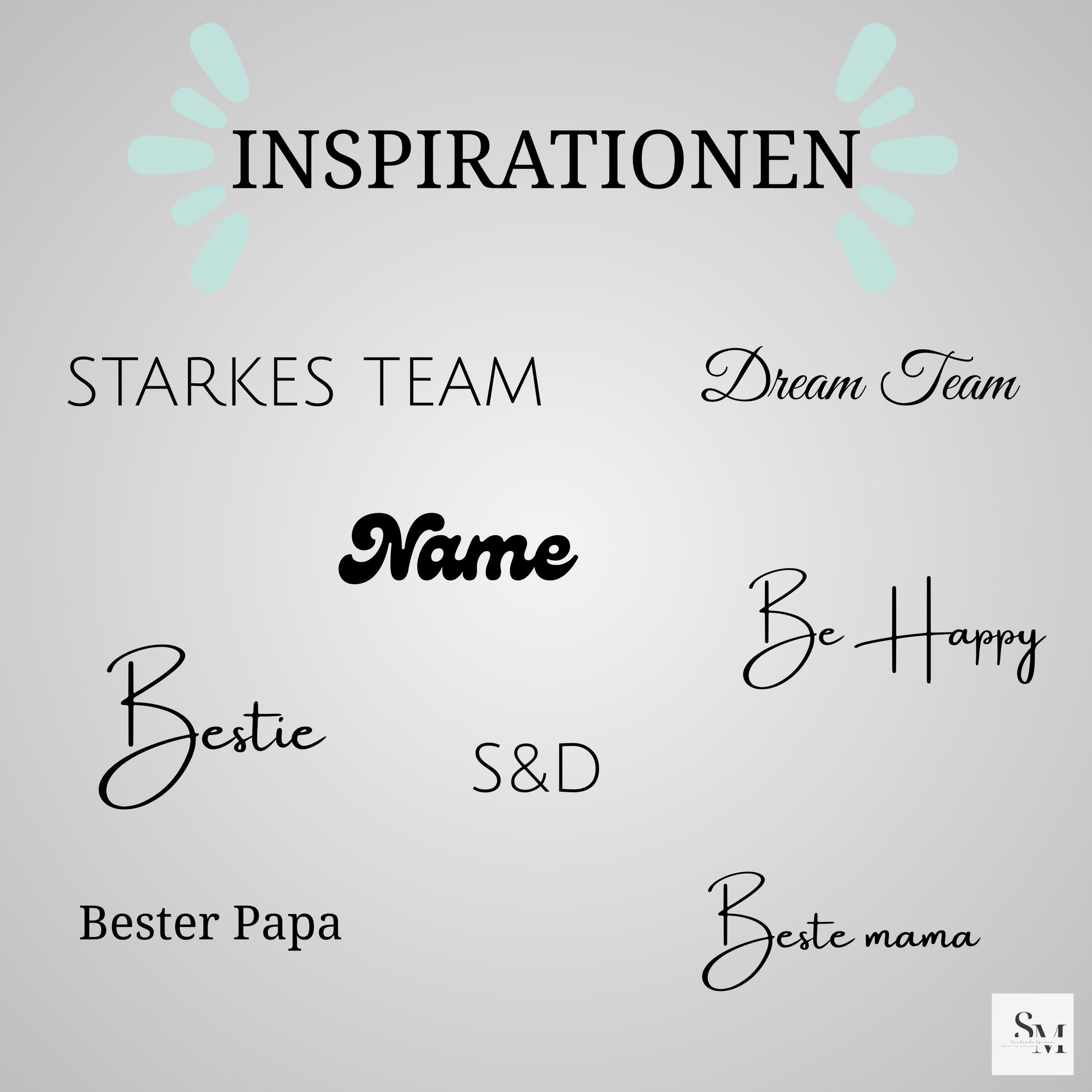 Bitte gib deinen Wunschtext im Personalisierungsfeld ein. Falls du eine bestimmte Schriftart möchtest, schau dir gerne unsere Inspirationen in den Bildern an!