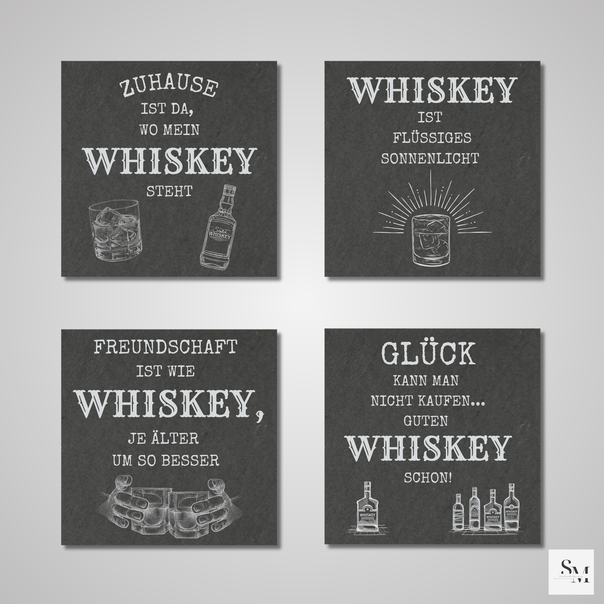 Schiefer Untersetzer mit Whiskey-Motiven und Sprüchen | Schönes Geschenke für Whiskey-Liebhaber | Perfekt für Bar, Zuhause & Büro | 4er Set