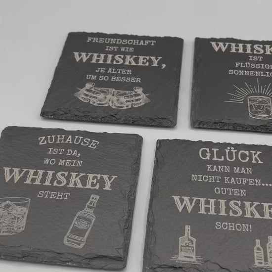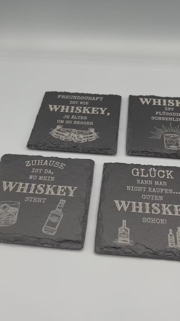 4er Set | Schiefer Untersetzer graviert mit Whiskey-Motiven & Sprüchen 🥃🔥